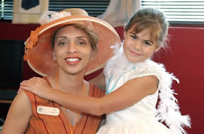 Though most of the girls had ditched the hats by the end of the dance time, Robertson briefly taught the history of tea and the reason for dressing to the nines. “A long time ago when ladies stayed home, they went out with friends for high noon tea,” Robertson said before leading the girls into the Bistro room complete with petit fours, sugar cubes, and strawberry tea. “They would get dressed up so they felt they had somewhere to go.”
